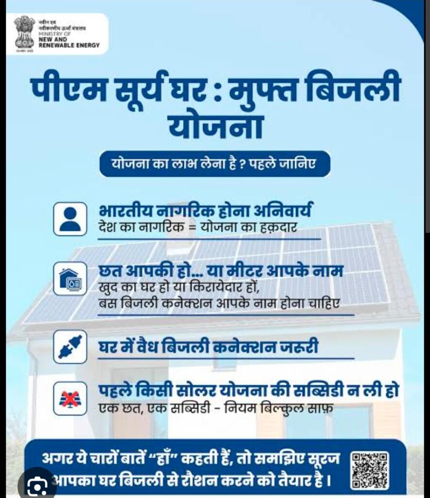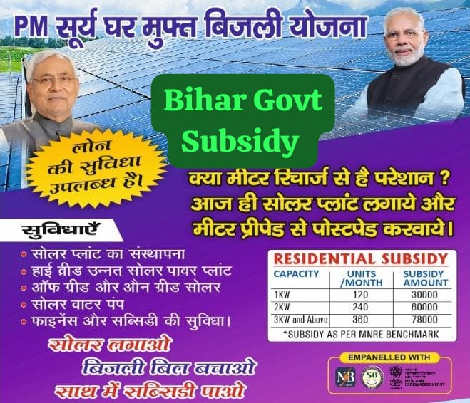 केन्द्रीय सरकार की सब्सिडी (PM Surya Ghar)