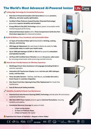 Hereβs a detailed product description of the LifeCore 9900 alkaline water ionizer, a home water ionizer from South Korea known for producing ionized alkaline and acidic water using advanced electrolysis technology: